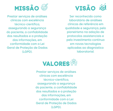 A fim de atender às exigências cada vez maiores da Medicina Laboratorial e da complementação diagnóstica, obedecemos a rigorosos sistemas de controle de qualidade, o que se estende à procedência dos insumos que utilizamos, aos equipamentos de que possuímos e à rede de fornecedores, além de seu próprio corpo de colaboradores.